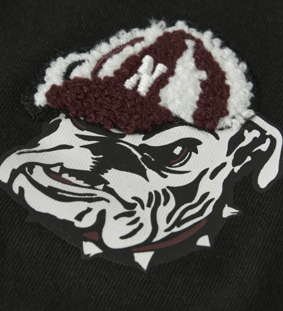 Sej Name It t-shirt i sort med et print på det ene bryst af en bulldog med en hat i frotté. Name It t-shirten er designet med en rund halsudskæring med en smal ribkant og korte ærmer.