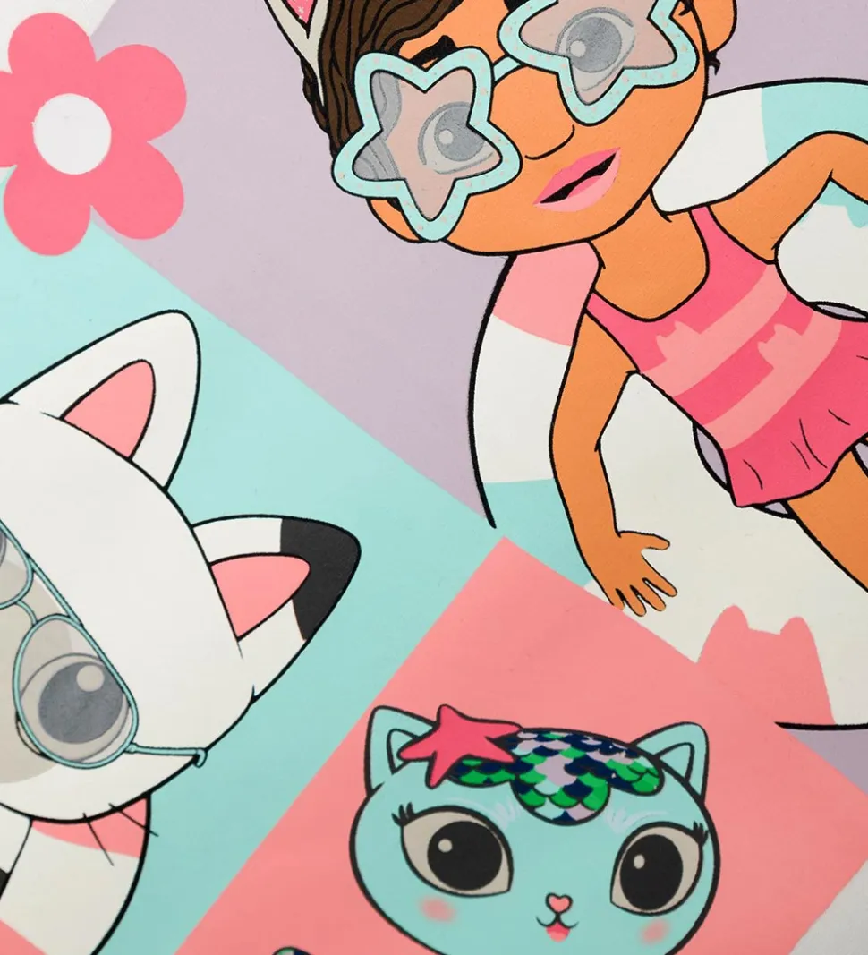 Skøn Name It top i hvid med et skønt og farverigt Gabby´s Dollhouse print på fronten, hvor dele af printet er med glitter.
