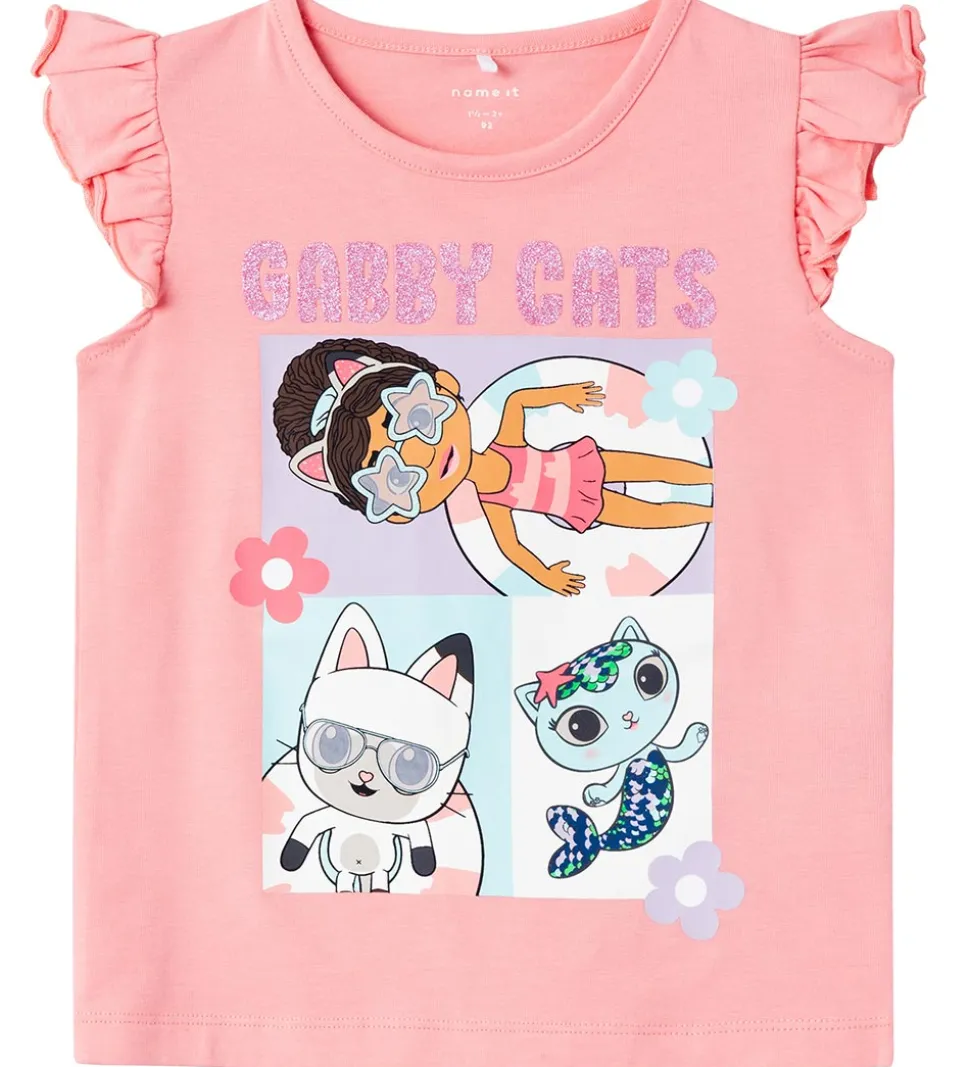 Skøn Name It top i rosa med et skønt og farverigt Gabby´s Dollhouse print på fronten, hvor dele af printet er med glitter.