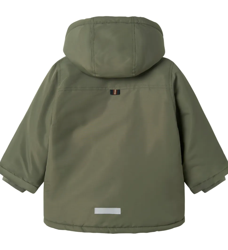 Flot Name It vinterjakke i ensfarvet armygrøn.
