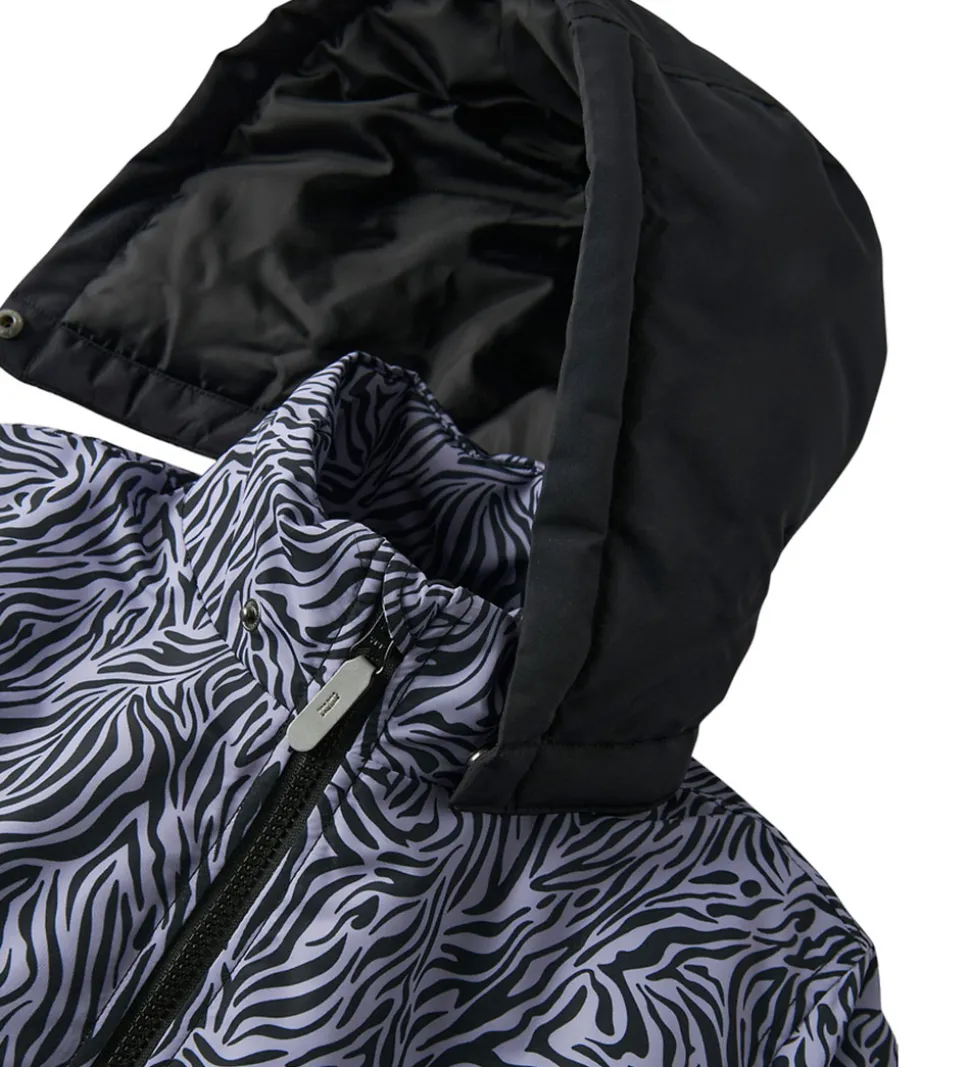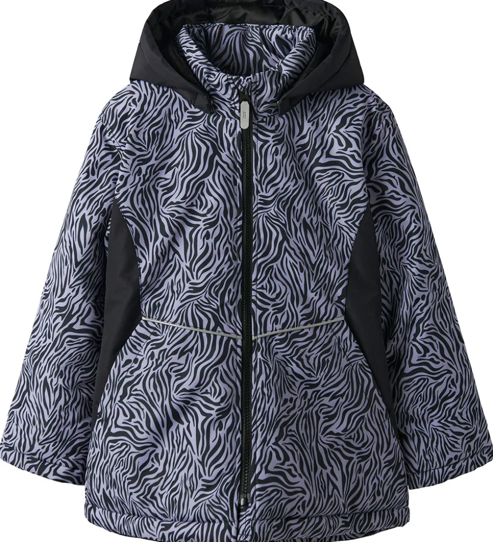 Smart Name It vinterjakke med et flot zebraprint i sort og støvet lilla.