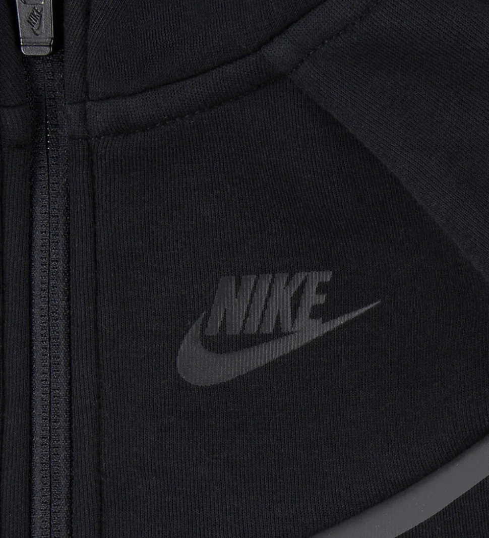 Stilfuldt Nike sweatsæt bestående af en sort cardigan og et par matchende sweatpants med Nike logo.