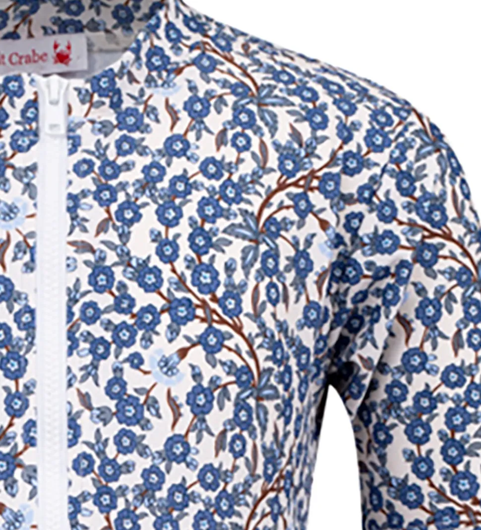 Smart Petit Crabe badeheldragt i hvid med et allover blomsterprint i blå nuancer.