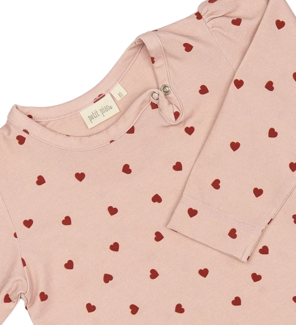 Smukke Petit Piao leggings i en dyb rød farve med print af små hjerter. Petit Piao leggingsene har en elastisk kant i livet, der sikrer en god pasform.