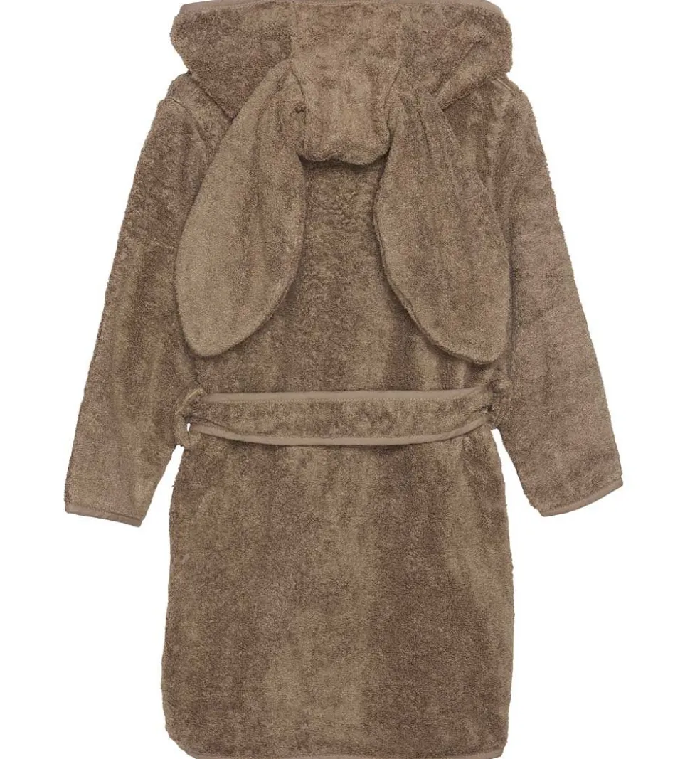 Sød Pippi Baby badekåbe i ensfarvet armygrøn med to lange kaninører fastsyet på hætten.