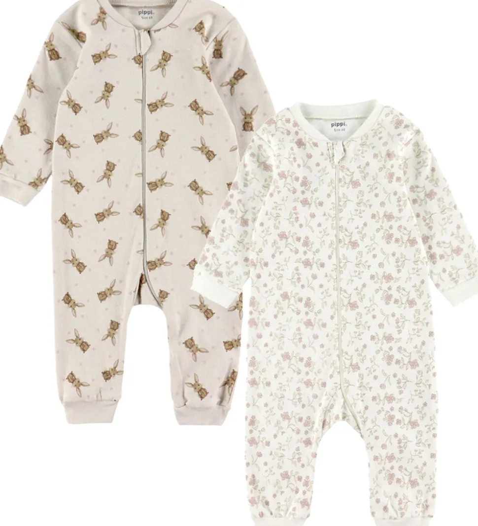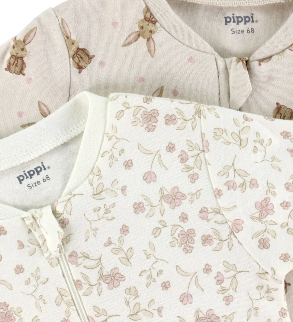 Flotte Pippi Baby heldragter solgt i en 2-pak i følgende designs: