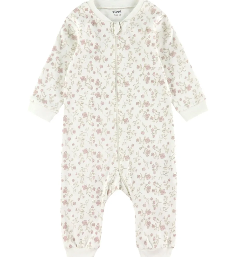Pippi Baby heldragterne har lange ærmer og ben med brede ribkanter. De åbnes på fronten ved hjælp af en gennemgående lynlås fra halsåbningen til venstre ben. I halsåbningen er der en smal ribkant, og heldragterne er i en lækker bomuldskvalitet.