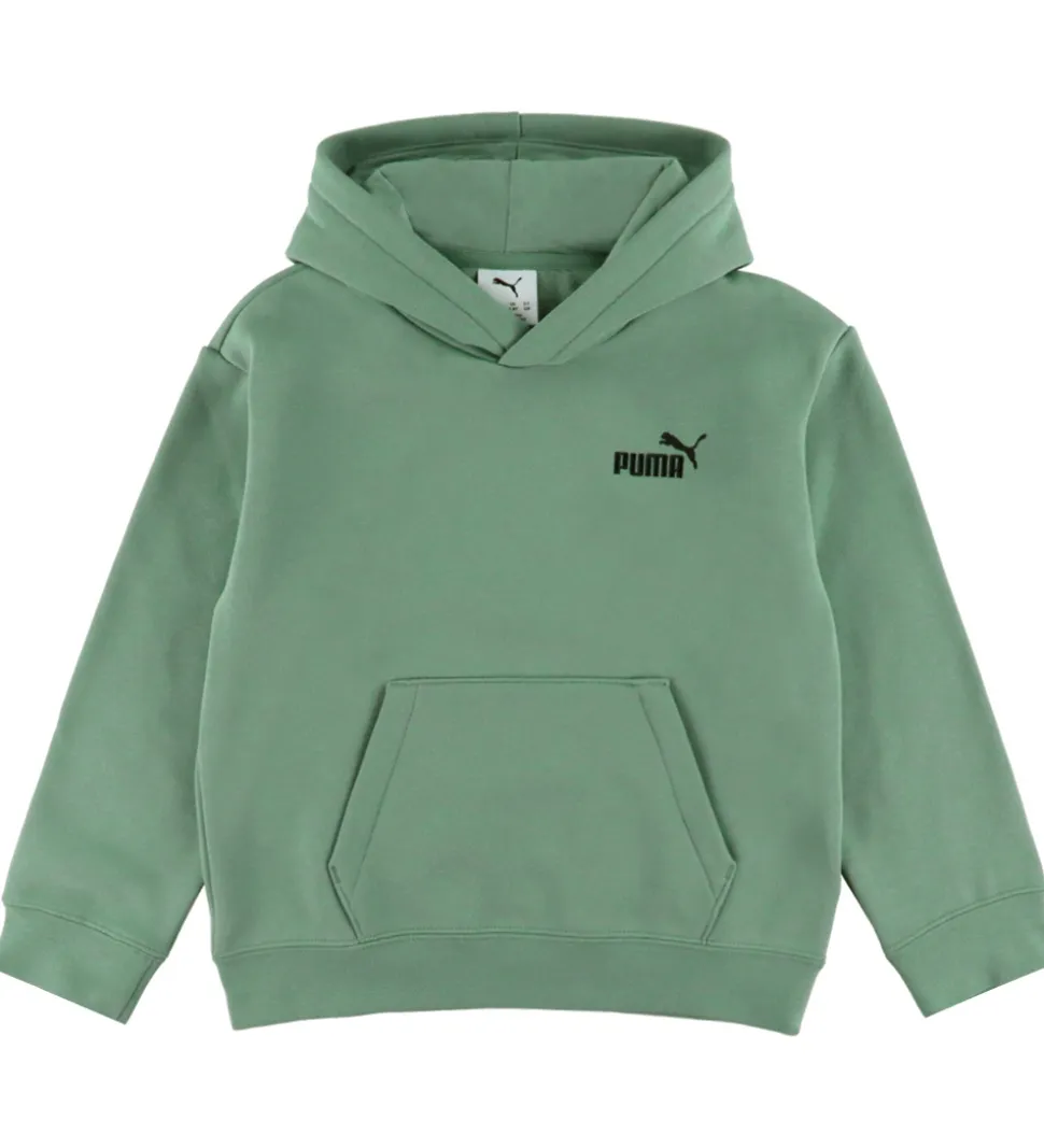 Flot Puma hættetrøje i støvet grøn med et sort, broderet logo på venstre bryst. Hættetrøjen har en blød hætte og en rummelig kængurulomme. Den har en afslappet pasform med lange ærmer og brede ribkanter i ærme- og taljeåbning. Indvendigt er der blødt, børstet bomuld.
