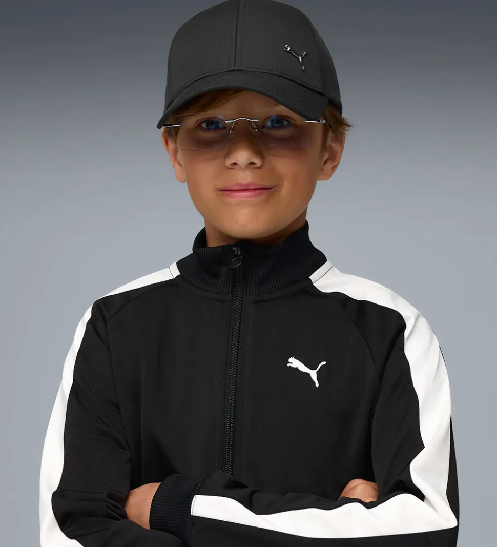 Stilfuld Puma kasket i ensfarvet sort med et diskret Puma-logo i mørk metal på fronten.