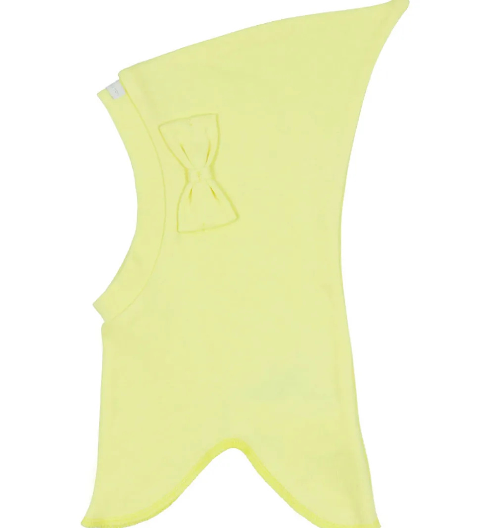 Sød Racing Kids elefanthue i skarp gul med en sløjfe på venstre side og en logoapplikation på toppen foran.