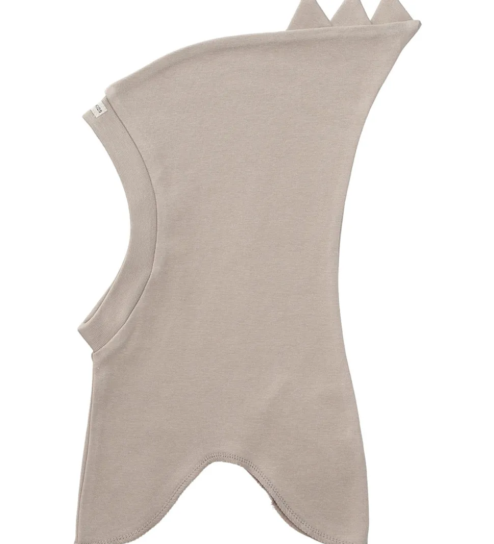 Fin Racing Kids elefanthue i lysebrun med takker på toppen og en logoapplikation.