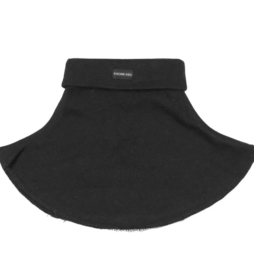 Praktisk Racing Kids halsedisse i sort med et ombuk i toppen for en blød kant.