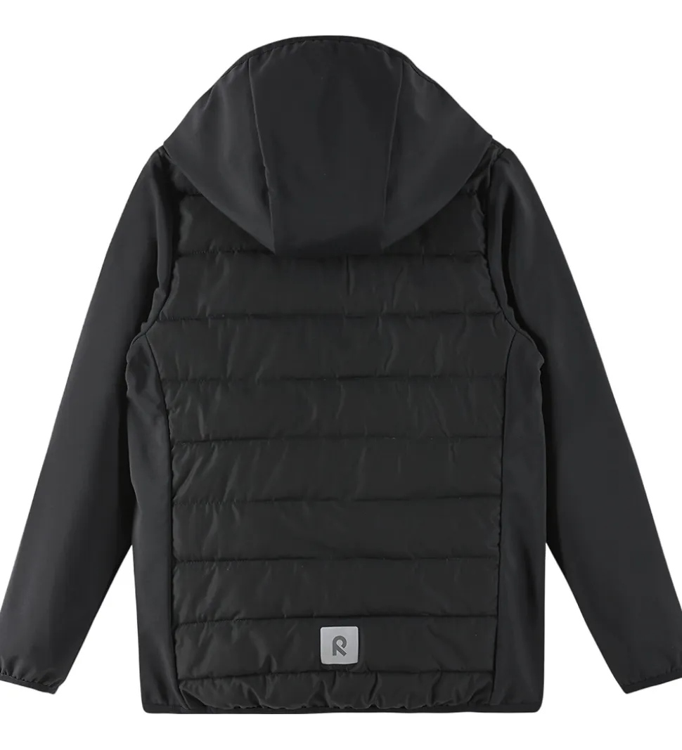 Reima dynejakken har en aftagelig hætte, som sidder fast med trykknapper, og den har smalle, elastiske kanter. Dynejakken lukkes med en lynlås med hagebeskytter, og i venstre side har den en brystlomme, som lukkes med en lodret lynlås.