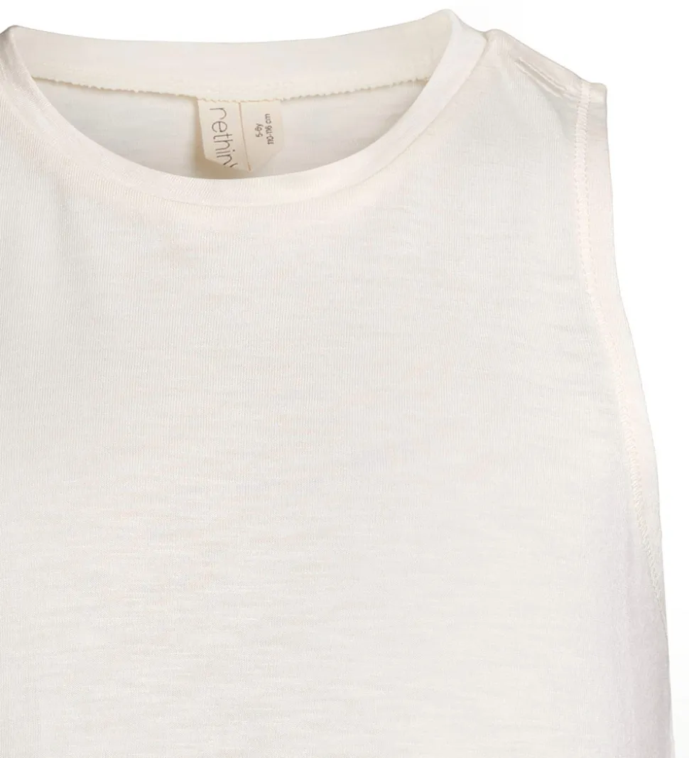 Rethinkit top er helt uden ærmer, og den har et flot A-snit, som giver en god vidde.