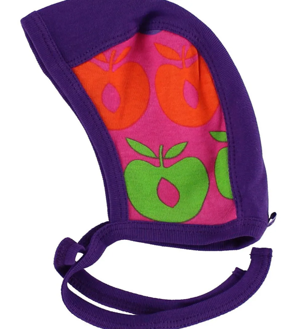 Blød og flot Småfolk hjelm i lilla og pink med multifarvede Småfolk æbler.