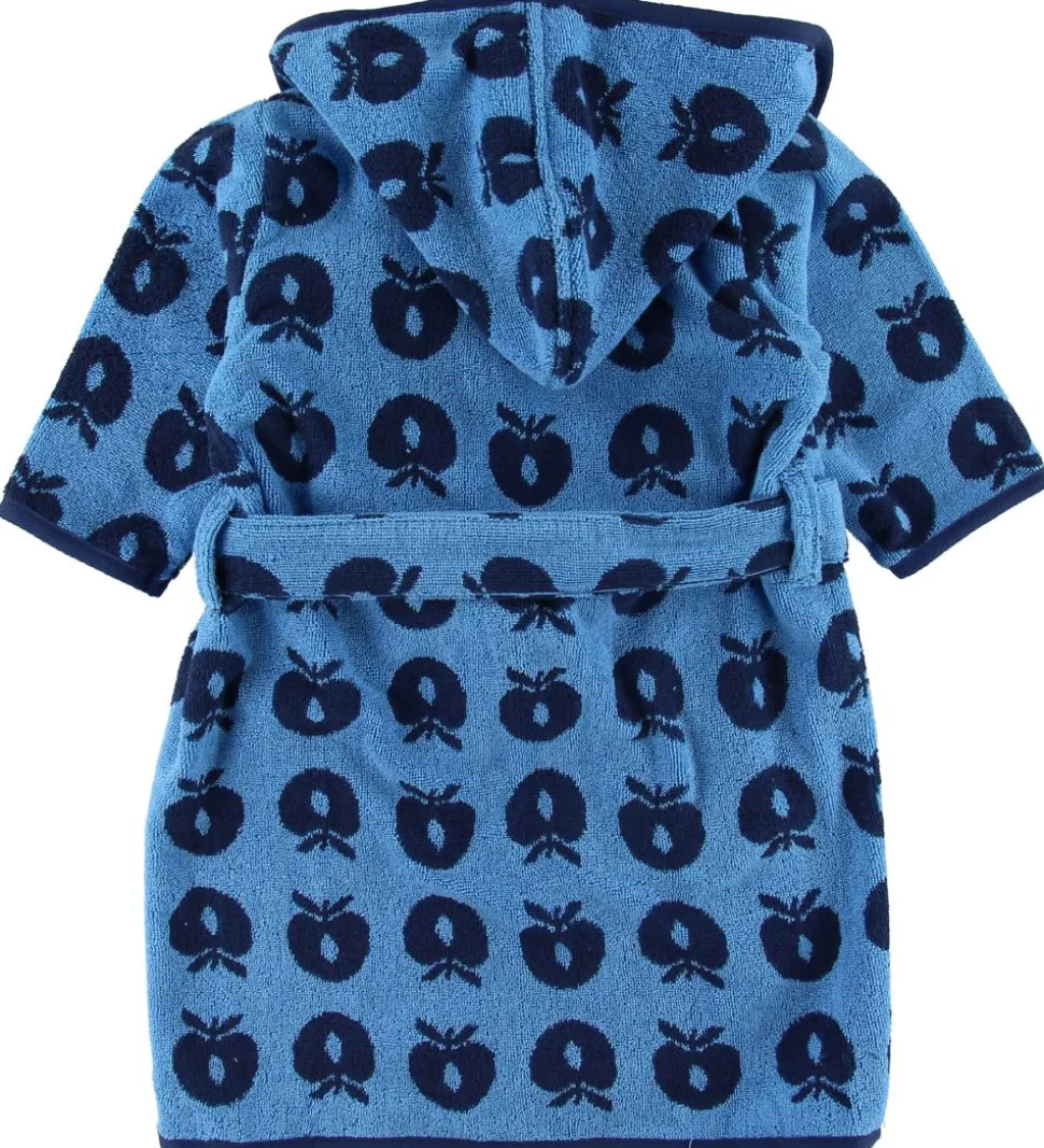 Blød og lækker Småfolk Badekåbe i blå med allover print af de klassiske Småfolk-æbler.