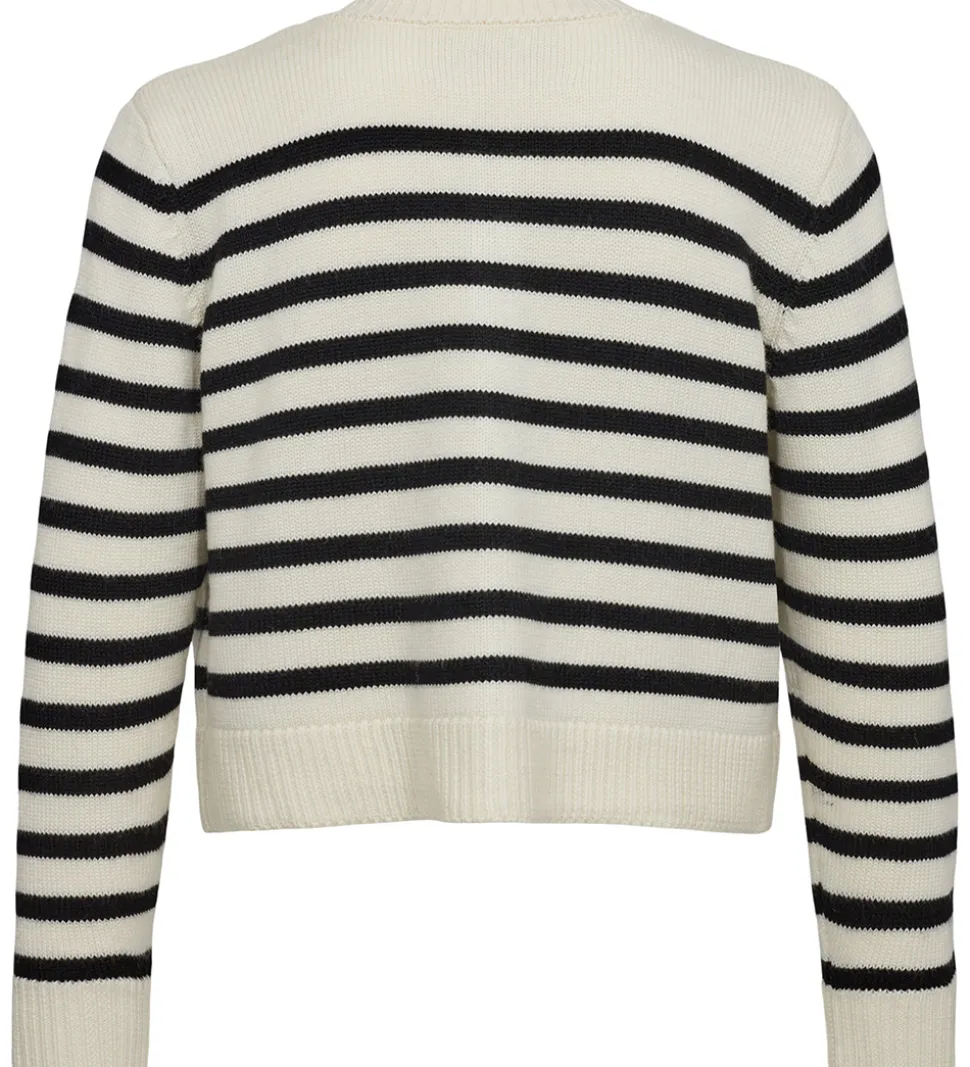 Skøn Sofie Schnoor cardigan i cremehvid med brede, sorte striber.
