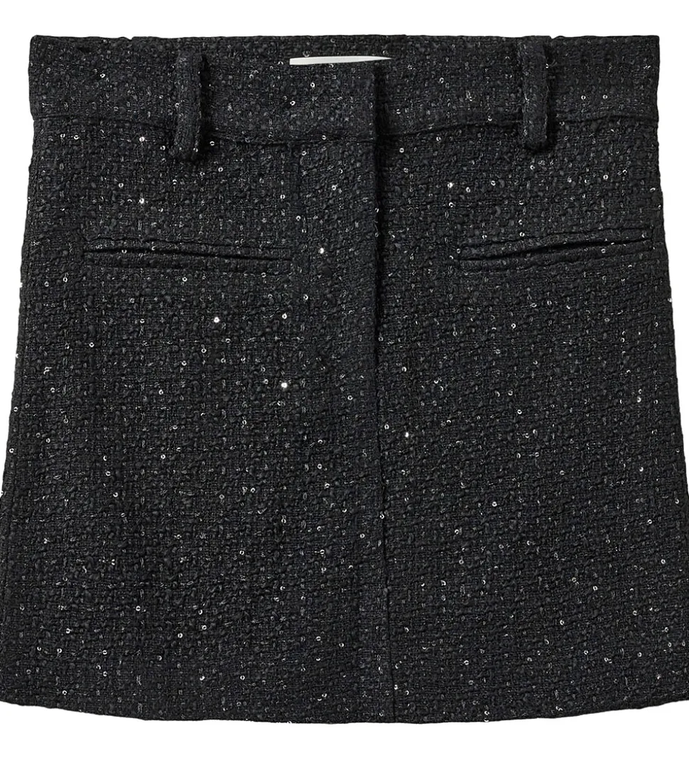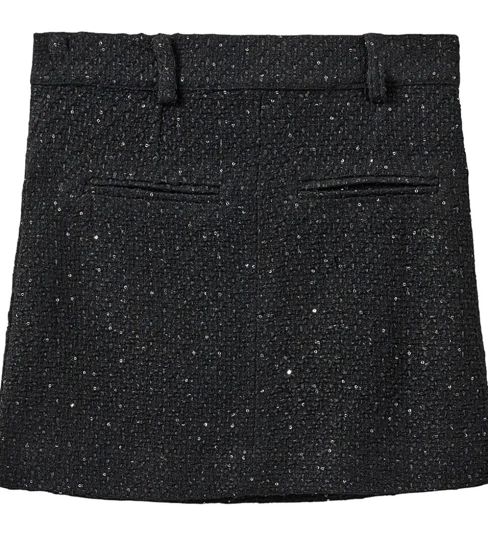 Lækker Sofie Schnoor nederdel i sort med glitrende palietter, der tilføjer et festligt touch. Nederdelen åbnes fortil med hægte og lynlås.