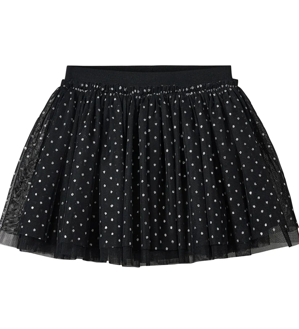 Fin Sofie Schnoor Nederdel i sort med sølvfarvede glimmerprikker, der skaber et flot visuelt indtryk.