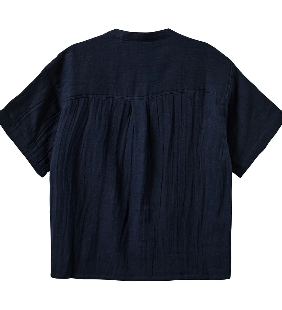 Sofie Schnoor skjorten har korte ærmer, og i halsåbningen er der en flot kinakrave. Fortil åbnes skjorten med gennemgående knapper. Skjorten er i en blød, fastvævet bomuldskvalitet.