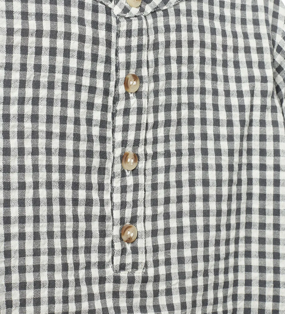 Sofie Schnoor skjorten har lange ærmer med slidser der lukkes med knap, og i halsåbningen er der en flot kinakrave. Fortil åbnes skjorten ned til midt på maven med knapper. Skjorten er i en let, fastvævet bomuldskvalitet.