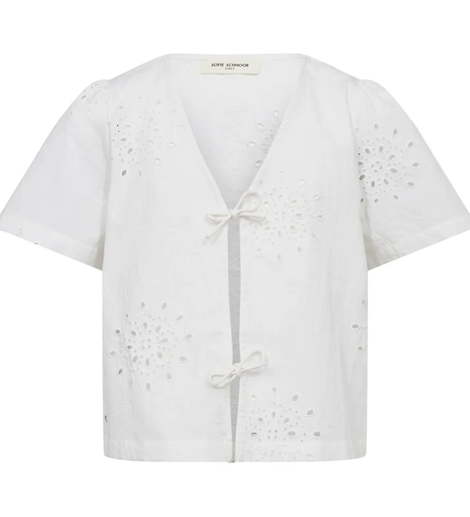 Flot Sofie Schnoor top i ensfarvet hvid med fine blonder over det hele.