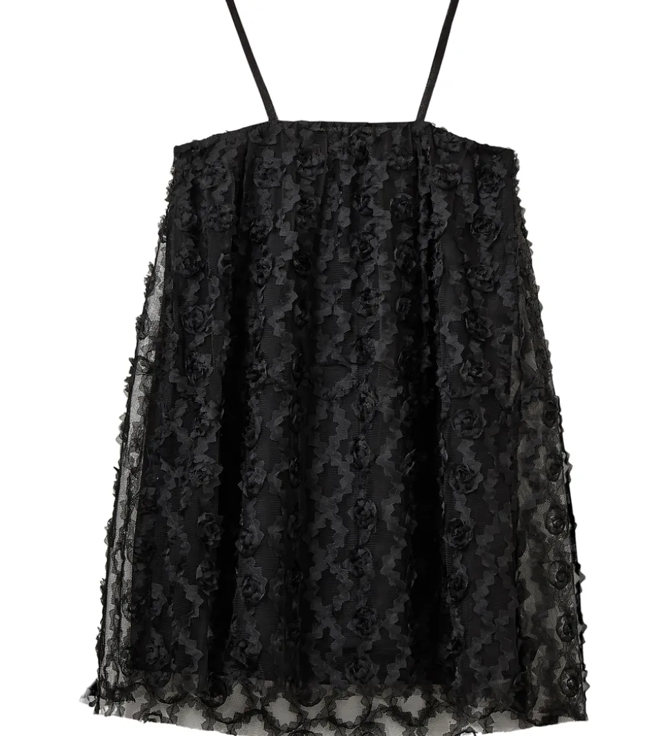 Elegant Sofie Schnoor tylkjole i sort tyl med en praktisk inderkjole, så kjolen ikke fremstår gennemsigtig.