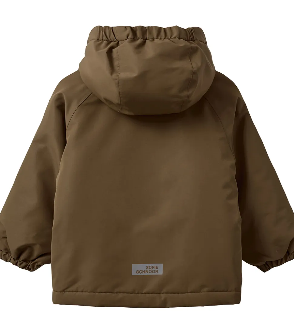 Sofie Schnoor vinterjakken har en aftagelig hætte, som fæstnes med trykknapper omkring den fleeceforede halskrave. Hætten har en elastikkant, så den sidder godt til hovedet. Jakken er foret med lækker fleece, mens ærmerne har glatvævet for. Ærmerne har praktiske snefang i strækbart polyester. På fronten af jakken er to lommer der lukkes med magneter.