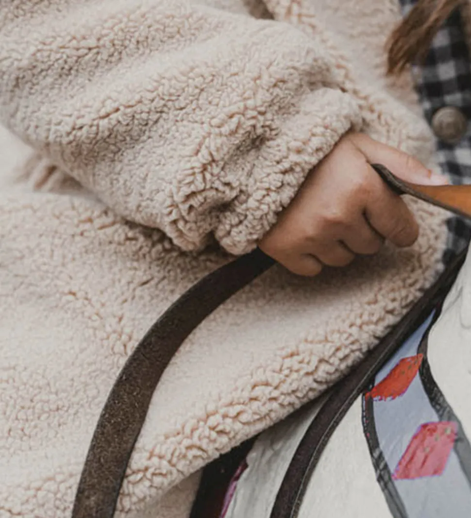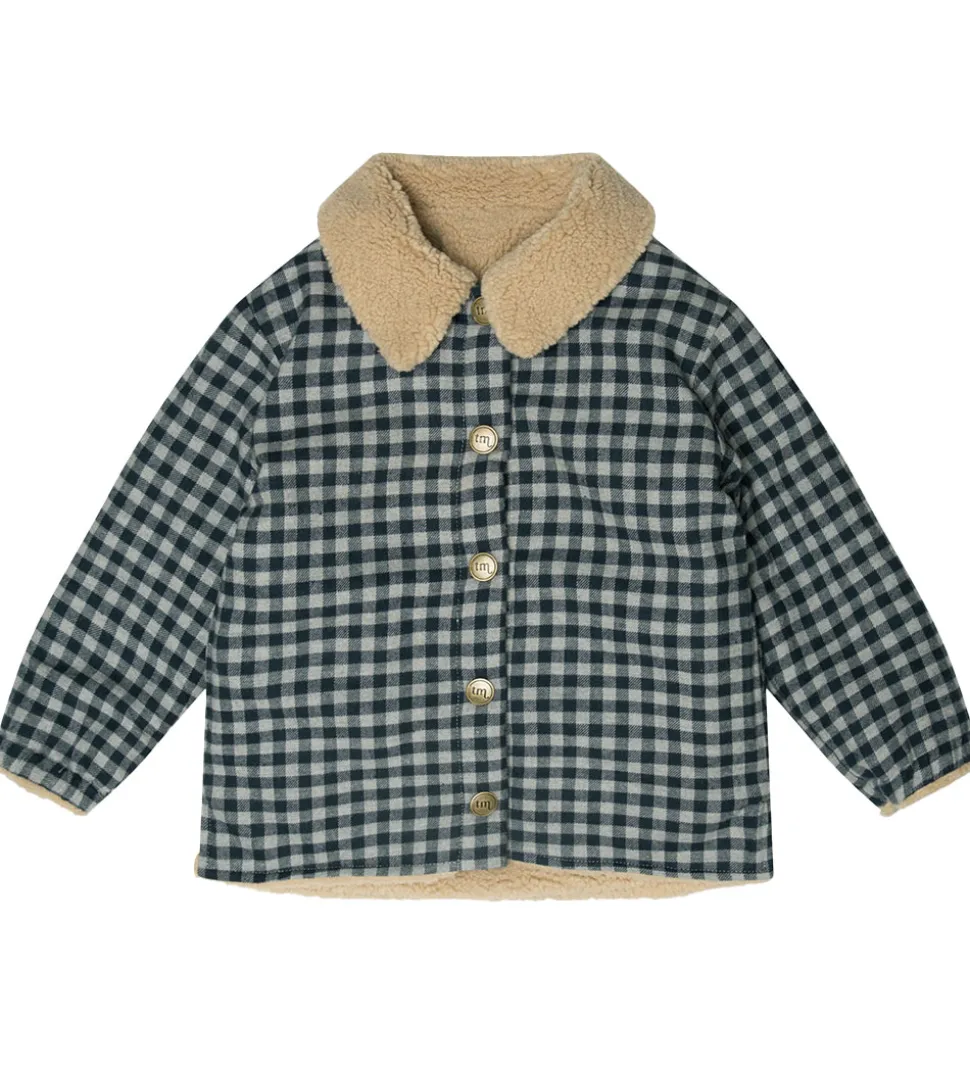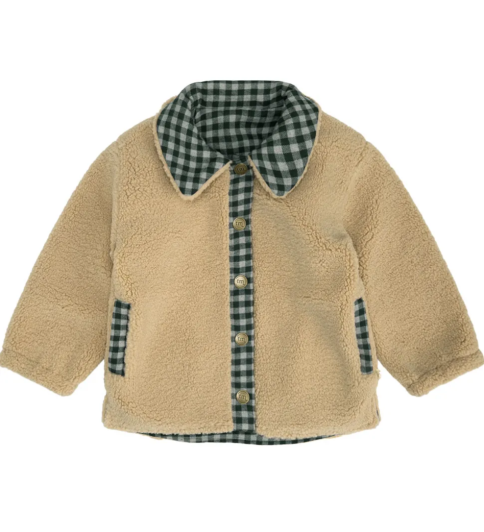 Lækker That’s Mine fleecejakke i et smart vendbart design, som på den ene side er i beige teddyfleece og på den anden er i en blåternet, glatvævet bomuldskvalitet. Uanset hvilken vej jakken vender, viser det “andet” design sig frem i små detaljer.