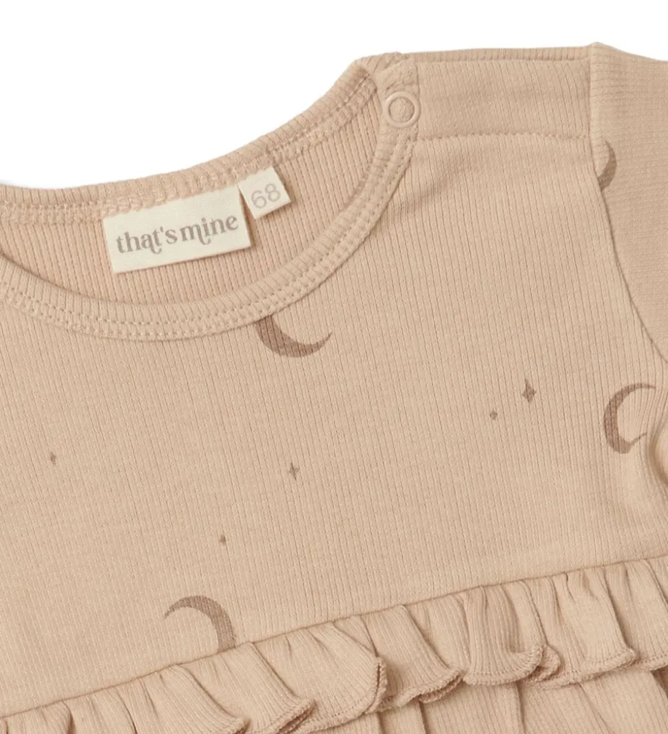Sød That’s Mine tunika i beige rib med et alloverprint af halvmåner i en mørkere nuance.