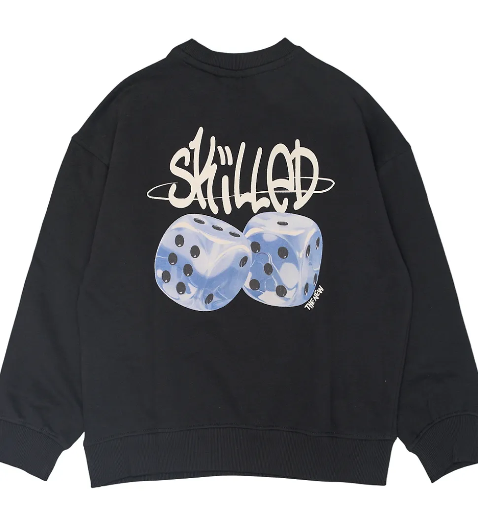 Stilfuld The New sweatshirt i en klassisk, sort farve med et hvidt print af ordet “Skilled” på brystet og ryggen. The New sweatshirten er designet med lange ærmer, rund hals og brede ribkanter, hvilket giver et tidløst og enkelt udtryk.