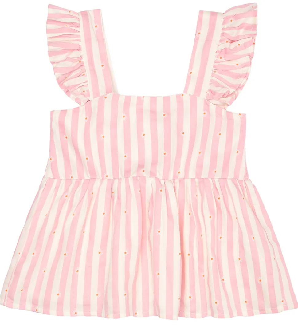 Smuk The New top med hvide og rosa striber og et allover print af små, hvide blomster.
