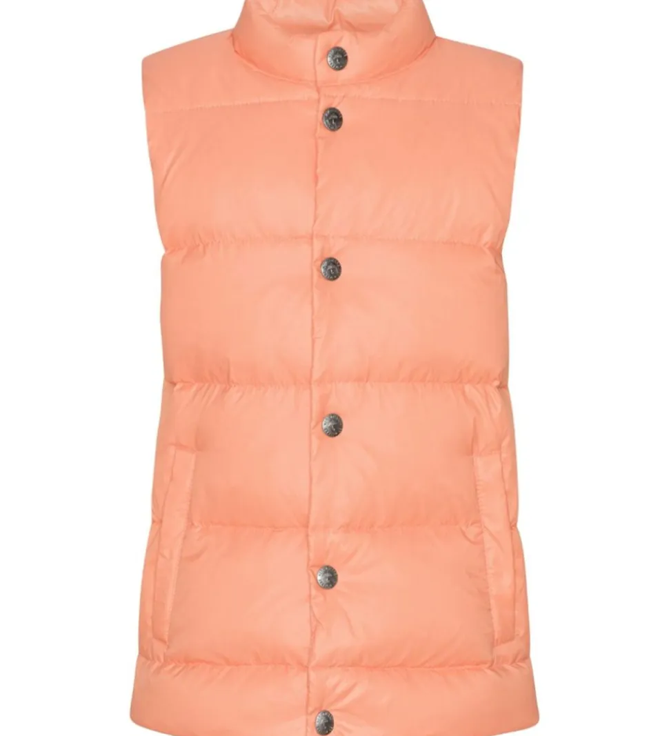 Skøn Ver de Terre dunvest i ensfarvet lys fersken. Dunvesten er lavet i et glatvævet materiale med vandrette syninger, der giver et klassisk dunjakke look.