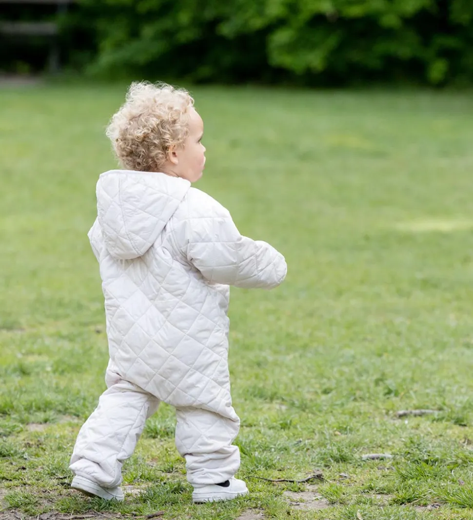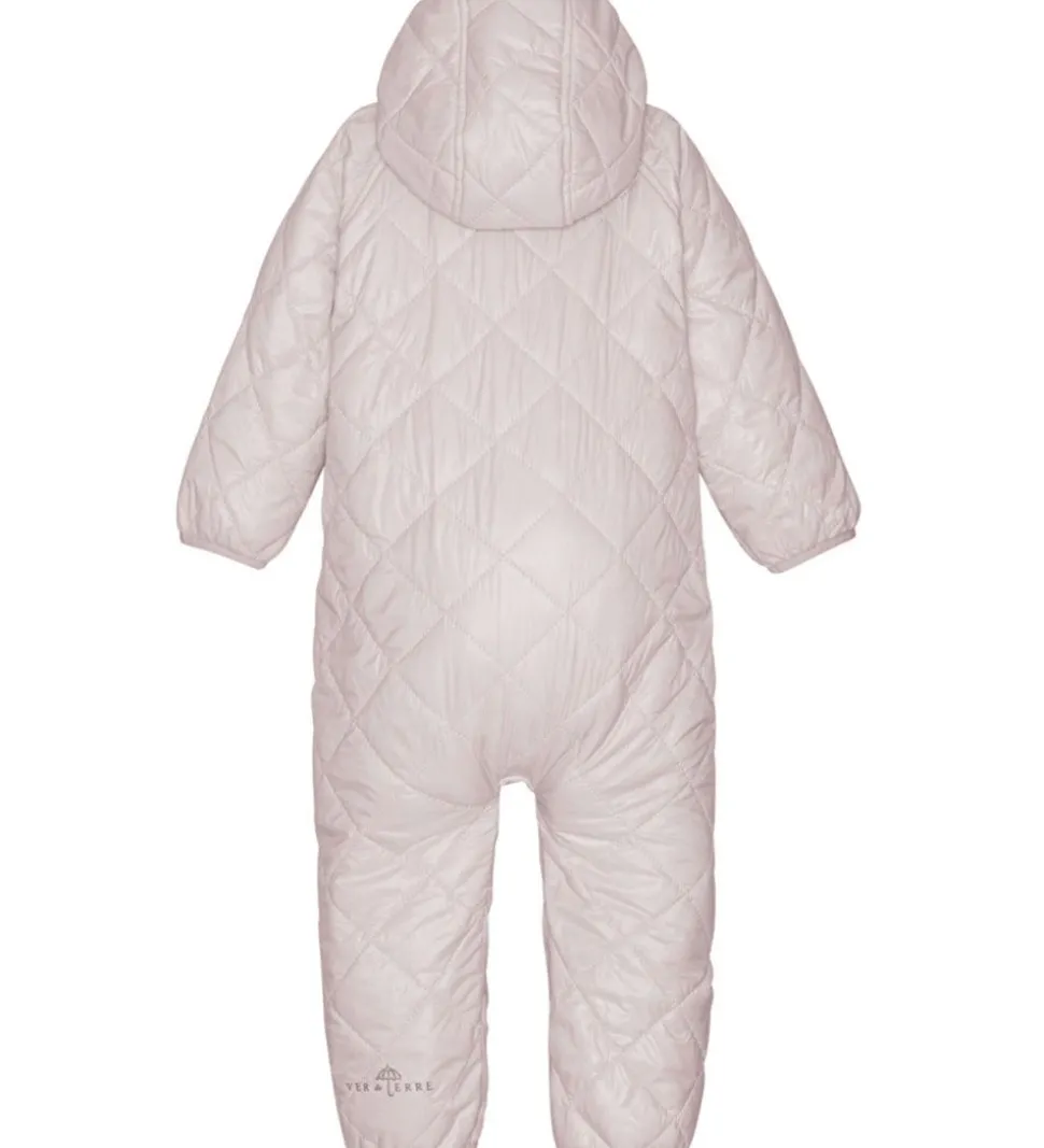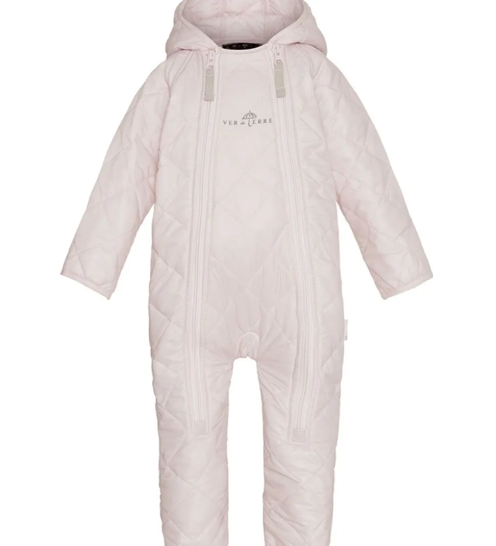 Sød Ver de Terre kørdedragt i ensfarvet pudderrosa i en glatvævet nylonkvalitet og med et flot, quiltet mønster.