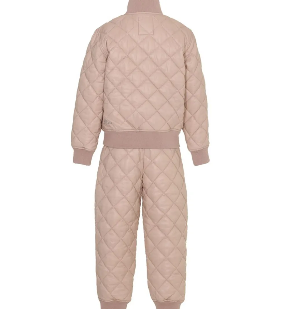 Fint Ver de Terre termotøj i pudderrosa og det består af en termojakke og et par termobukser.