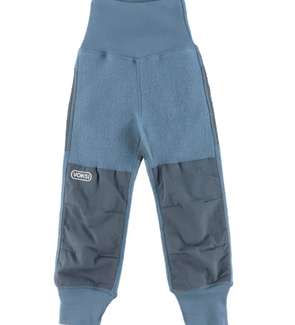 Praktiske og komfortable bukser af merinould i støvet blå fra Voksi, ideelle til de små. Bukserne har et stilrent design med forstærkede knæ og numse i blågrå. Ved benene og i livet er der brede kanter, som kan bukkes om, hvis man ønsker det. Det bløde materiale giver optimal bevægelsesfrihed, hvilket gør dem til et godt valg i hverdagen. Voksi formår at kombinere funktionalitet med en moderne stil.