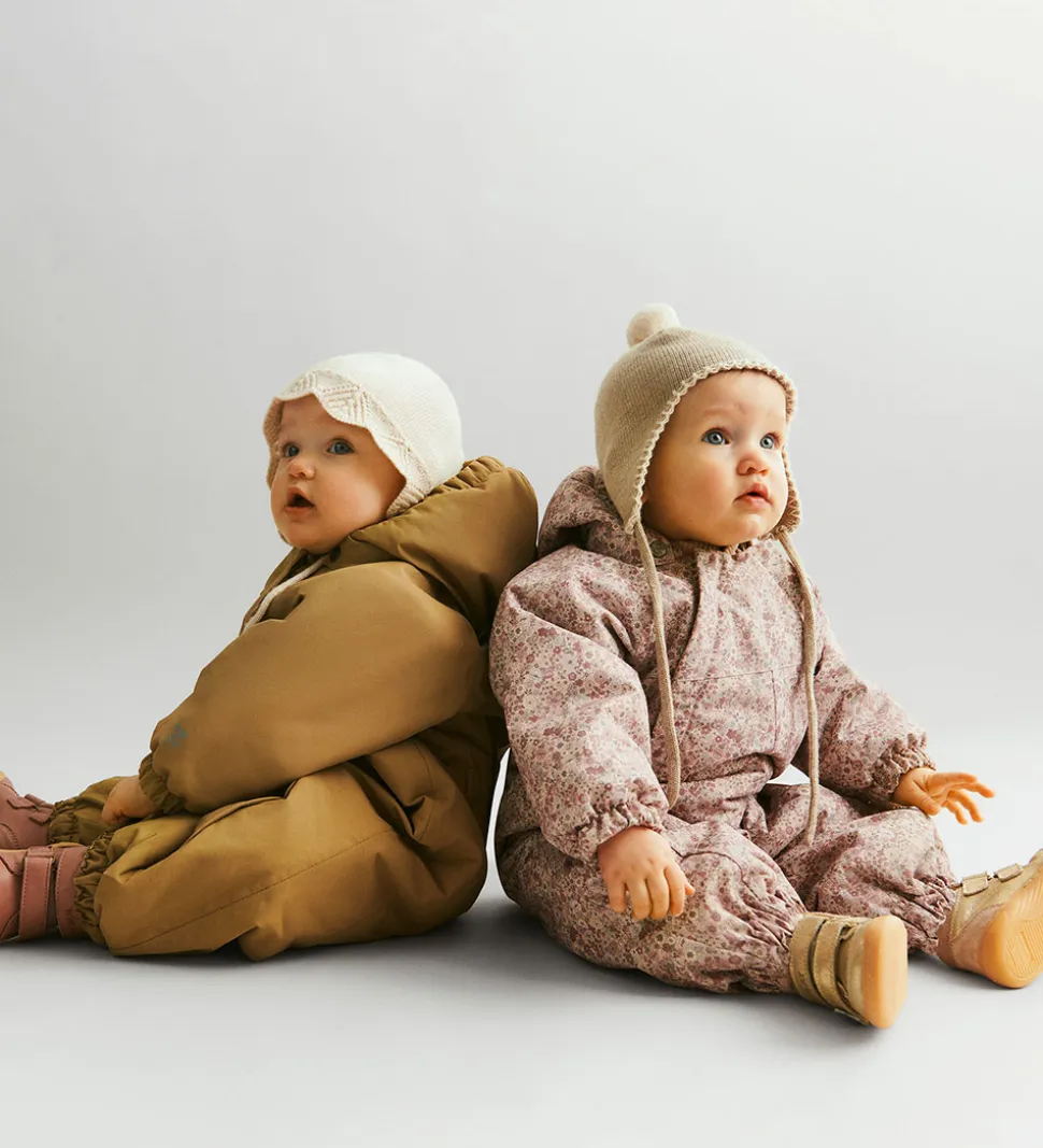 Wheat flyverdragten har en aftagelig hætte, der sidder fast med trykknapper om ribkraven, og i ansigtsåbningen er der en bred ribkant. Ærmerne har brede, fleeceforede elastikkanter, og buksebenene har elastikkanter med gummi på indersiden, og der er aftagelige, justerbare gummistropper til at sætte under støvlerne.