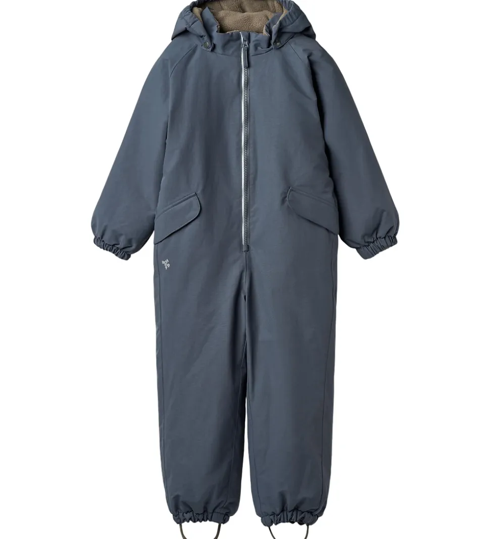 Fin Wheat flyverdragt i gråblå. Flyverdragten rummer også både refleksdetaljer og -print.