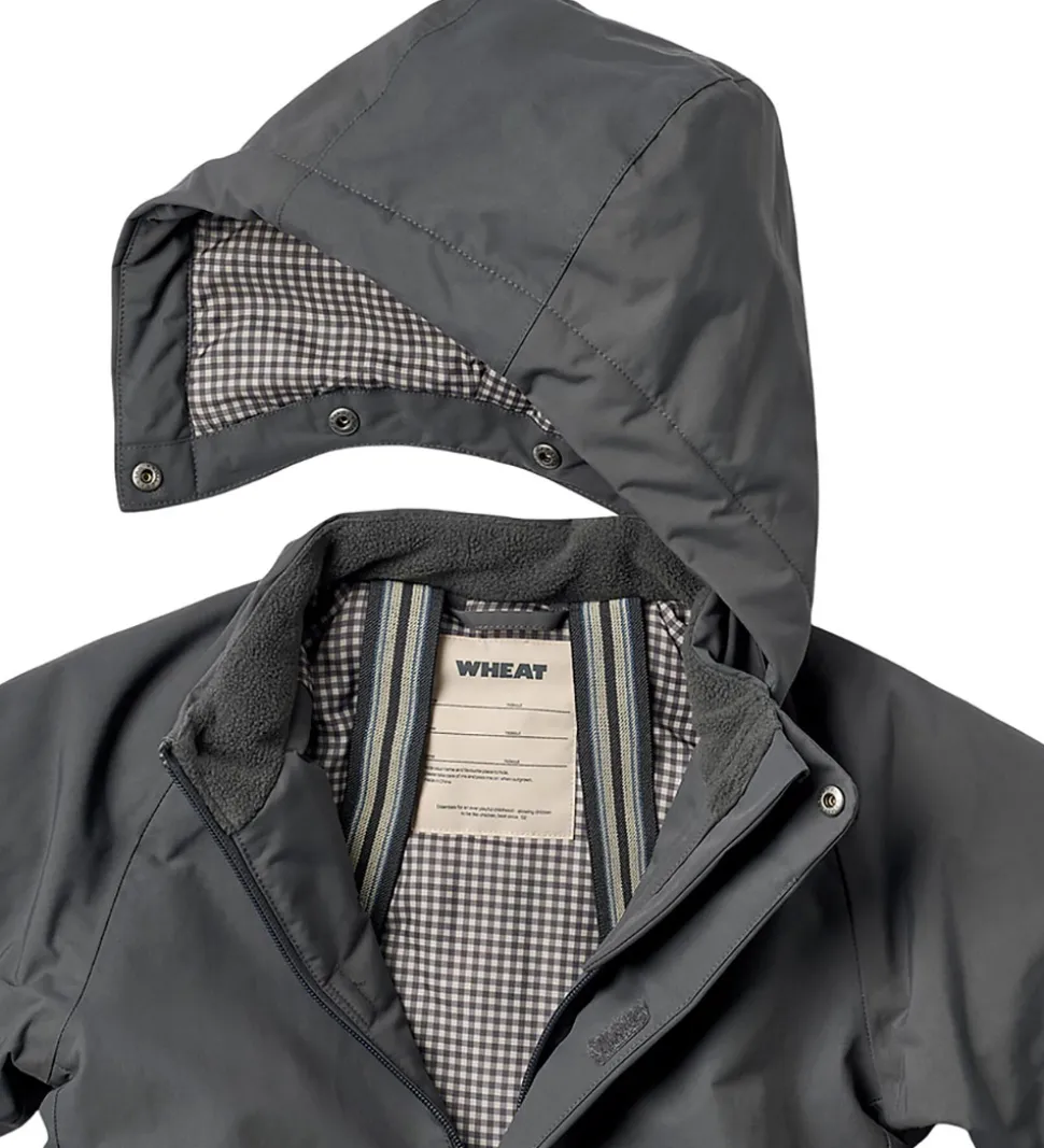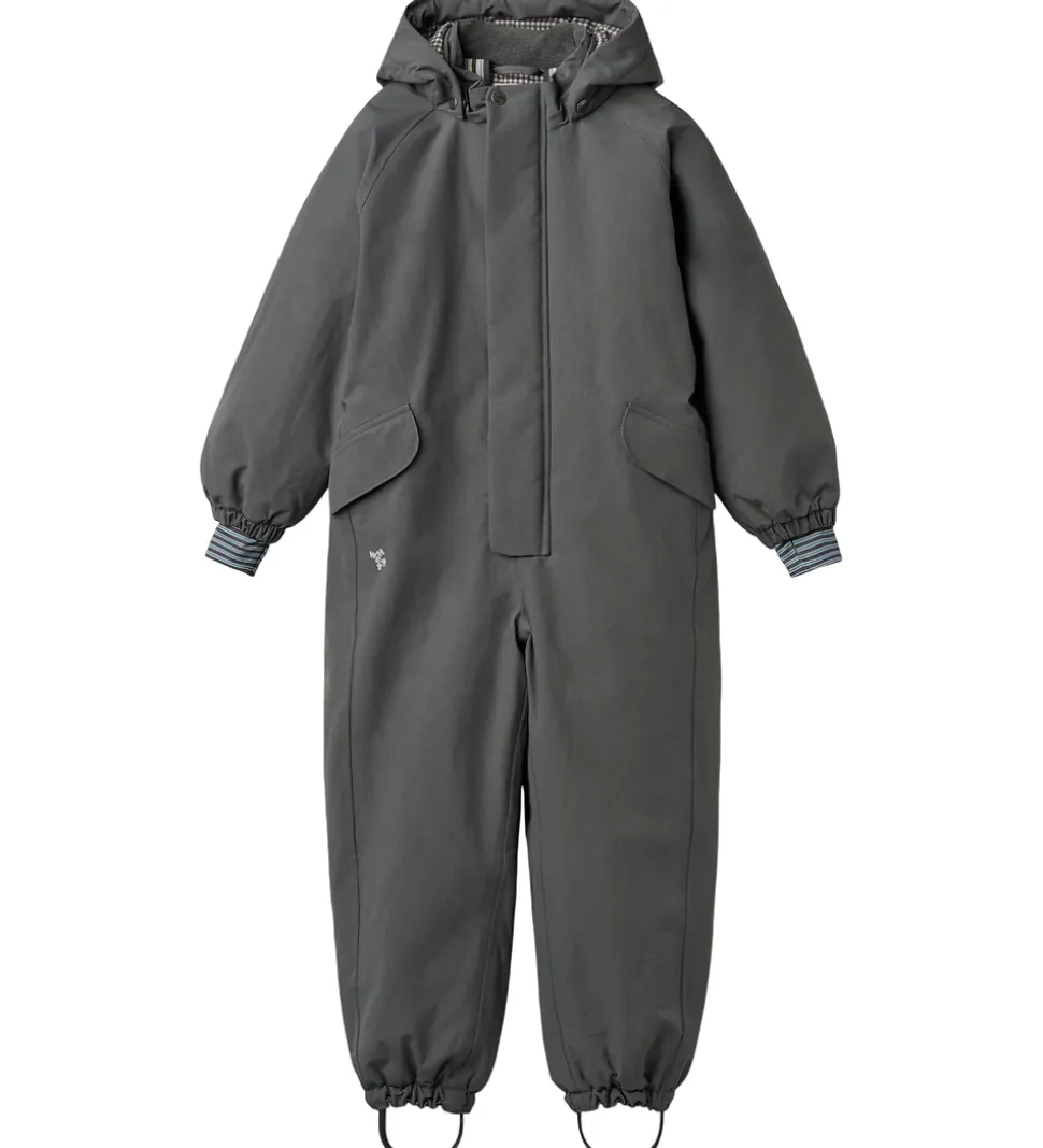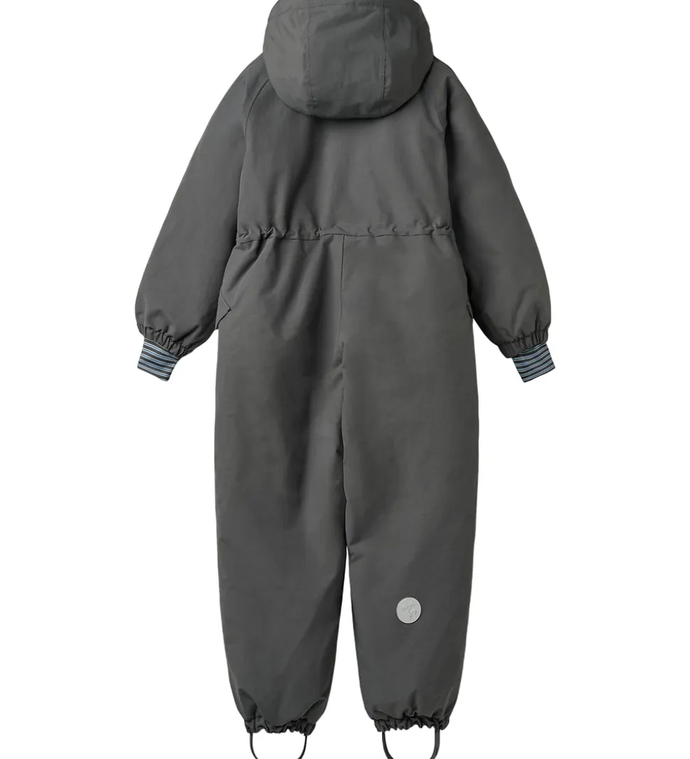 Skøn Wheat flyverdragt i mørk koksgrå. Flyverdragten rummer også både reflekspipings og -print.