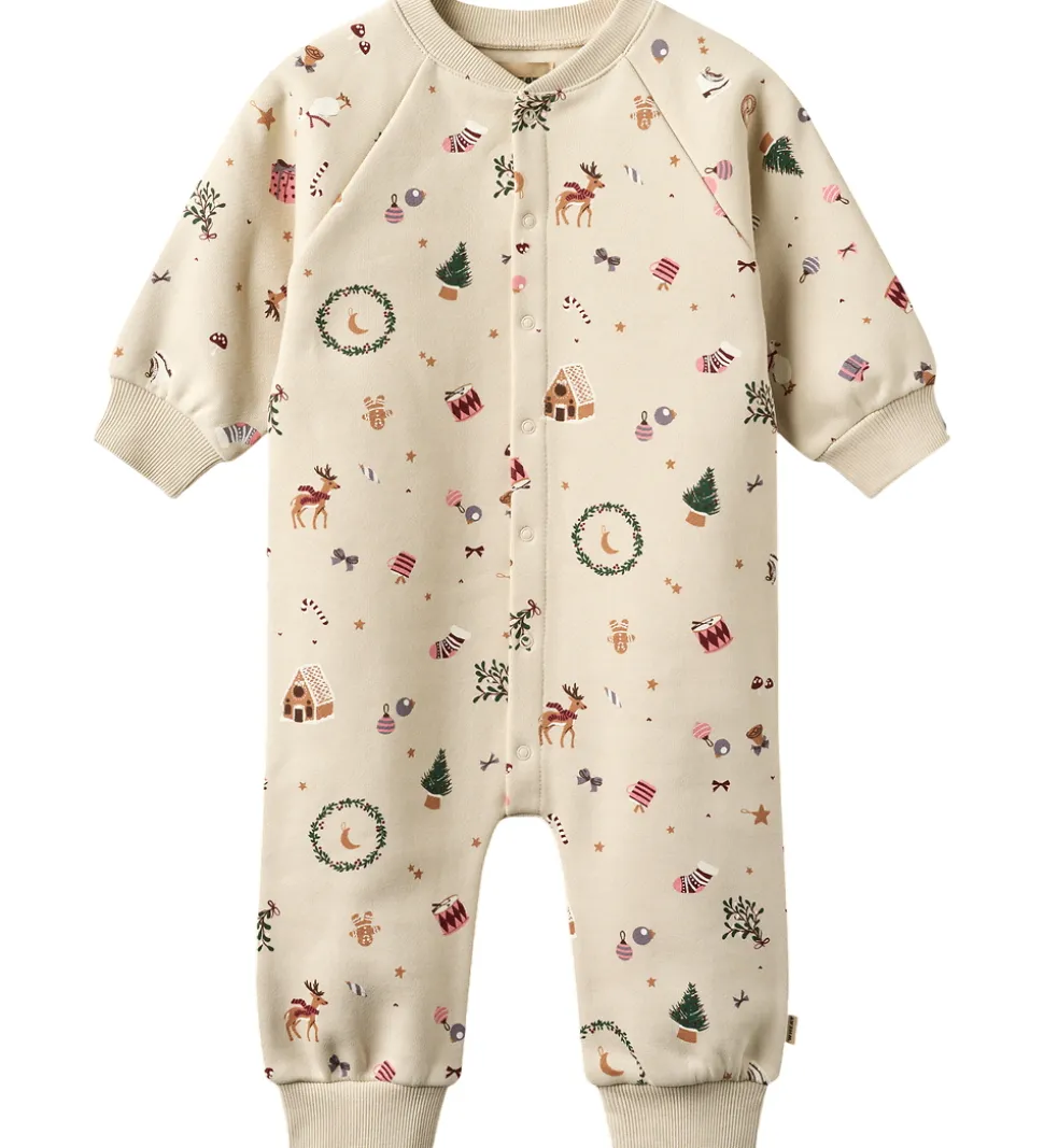 Charmerende Wheat heldragt i lys beige med et herligt allover print i form af forskellige julemotiver.