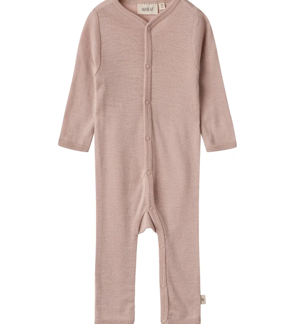Den stilfulde heldragt fra Wheat er et perfekt valg til de små. Med lange ærmer sørger den for varme og komfort hele dagen. Den fine heldragt er i støvet rosa og har en knaplukning foran, der åbnes med trykknapper hele vejen ned til venstre ankel. Wheat leverer igen kvalitet og stil med denne heldragt, som er ideel for enhver baby.