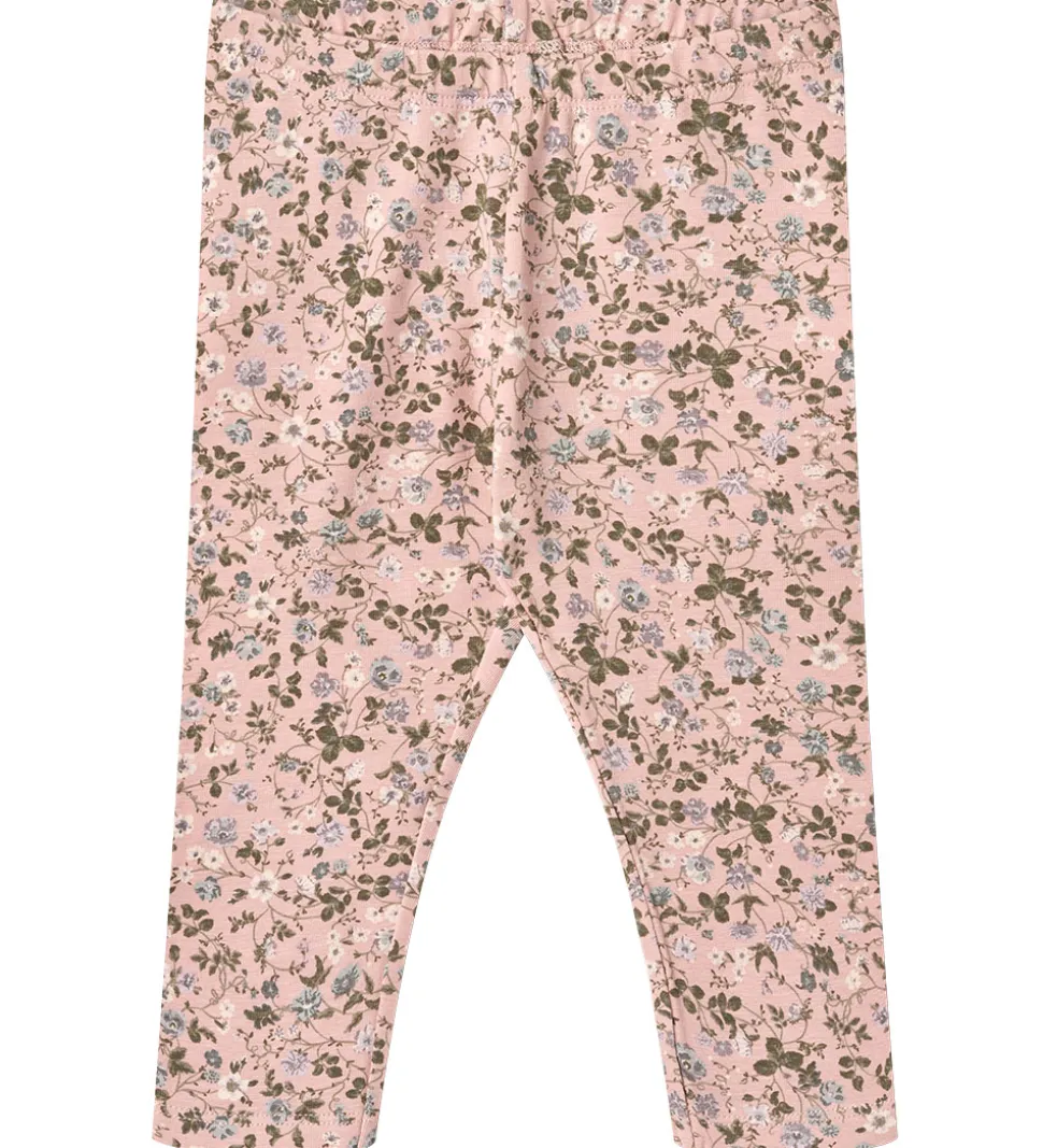 Flotte Wheat leggings i lys rosa med et allover småblomstret print i hvide, grønne og blå nuancer. Wheat leggingsene har en elastisk talje for en fleksibel pasform.