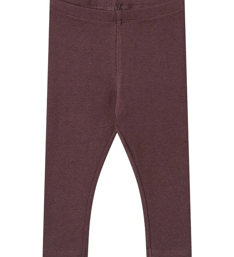 Skønne Wheat leggings i en dyb mørkelilla nuance med ribstruktur. Wheat leggingsene har en god elastik i taljen, som sikrer en behagelig pasform. De er fremstillet i en blød blanding af økologisk bomuld og modal.
