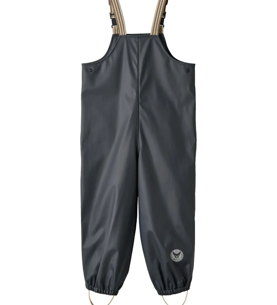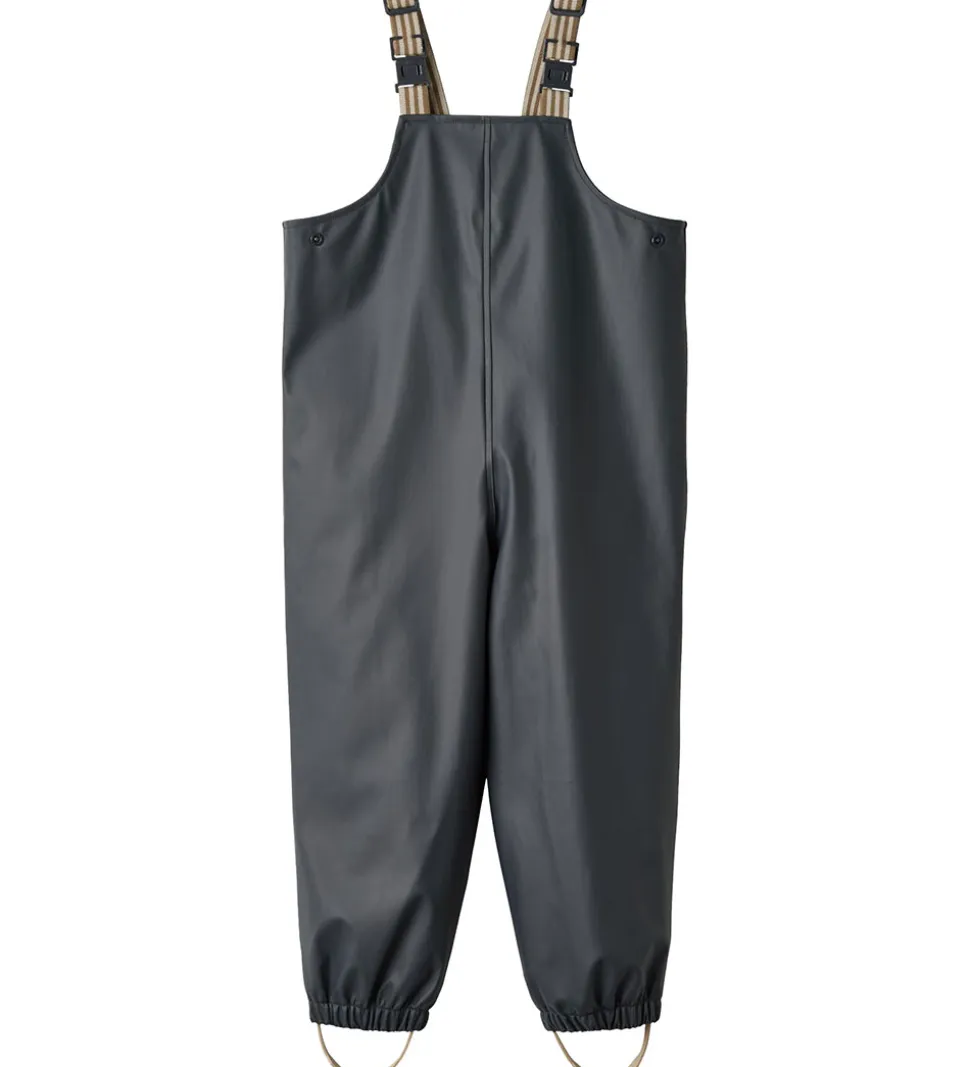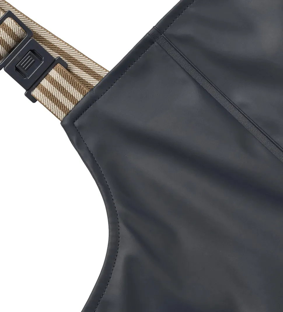 Fine Wheat regnbukser med seler af PU i navyblå.