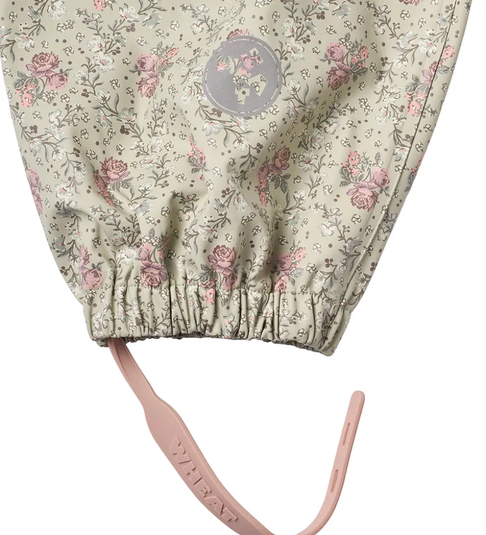 Fine Wheat regnbukser af PU i lys grøm med et blomstret alloverprint i rosa, hvide og grønne nuancer.