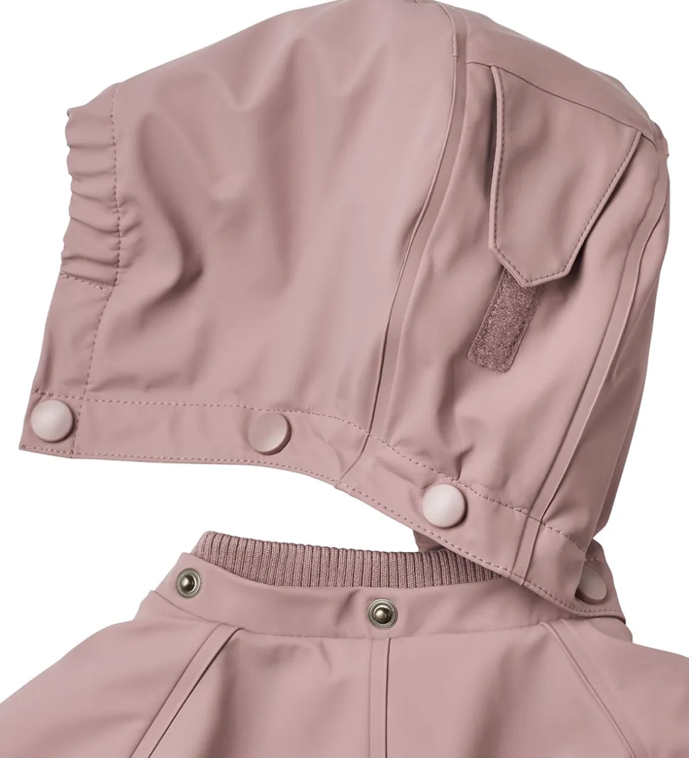 Regndragten har et termofor, så barnet holder varmen samtidig med, at den er behagelig.