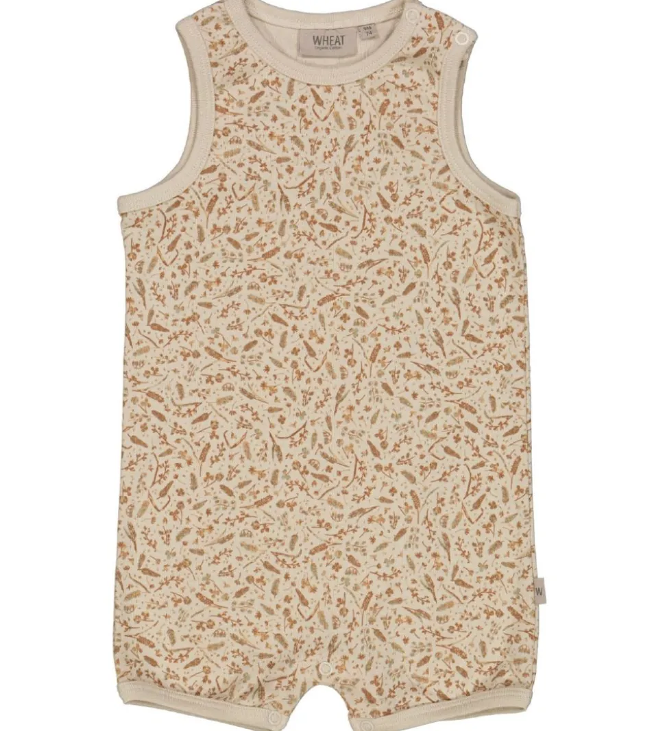 Smuk Wheat sommerdragt i beige med et allover print af korn i brune nuancer.