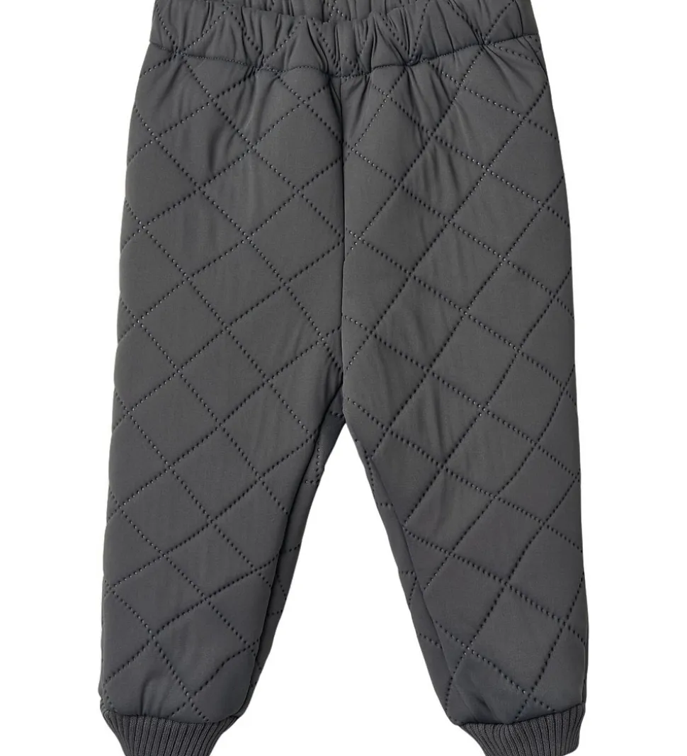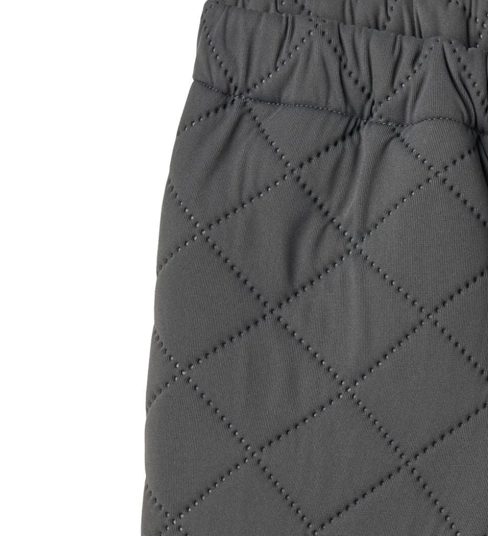 Fine Wheat termobukser i mørk koksgrå. Termobukserne har en quiltet struktur.