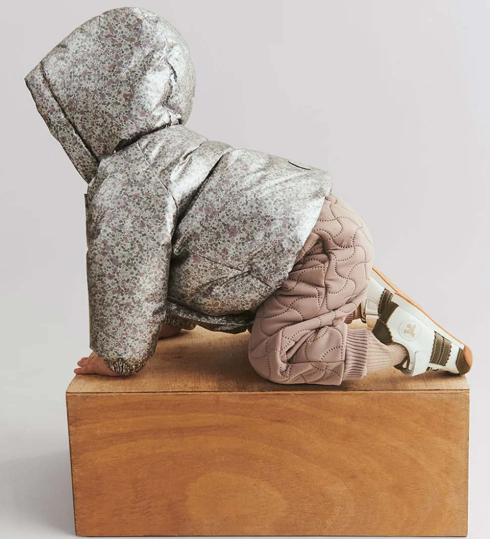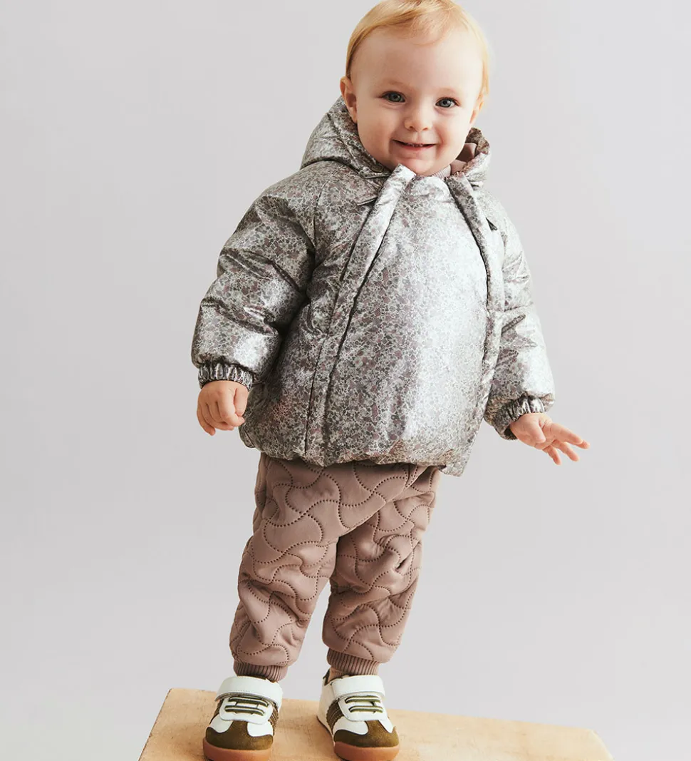 Fine Wheat termobukser i støvet lilla. Termobukserne har en bølgende, quiltet struktur.