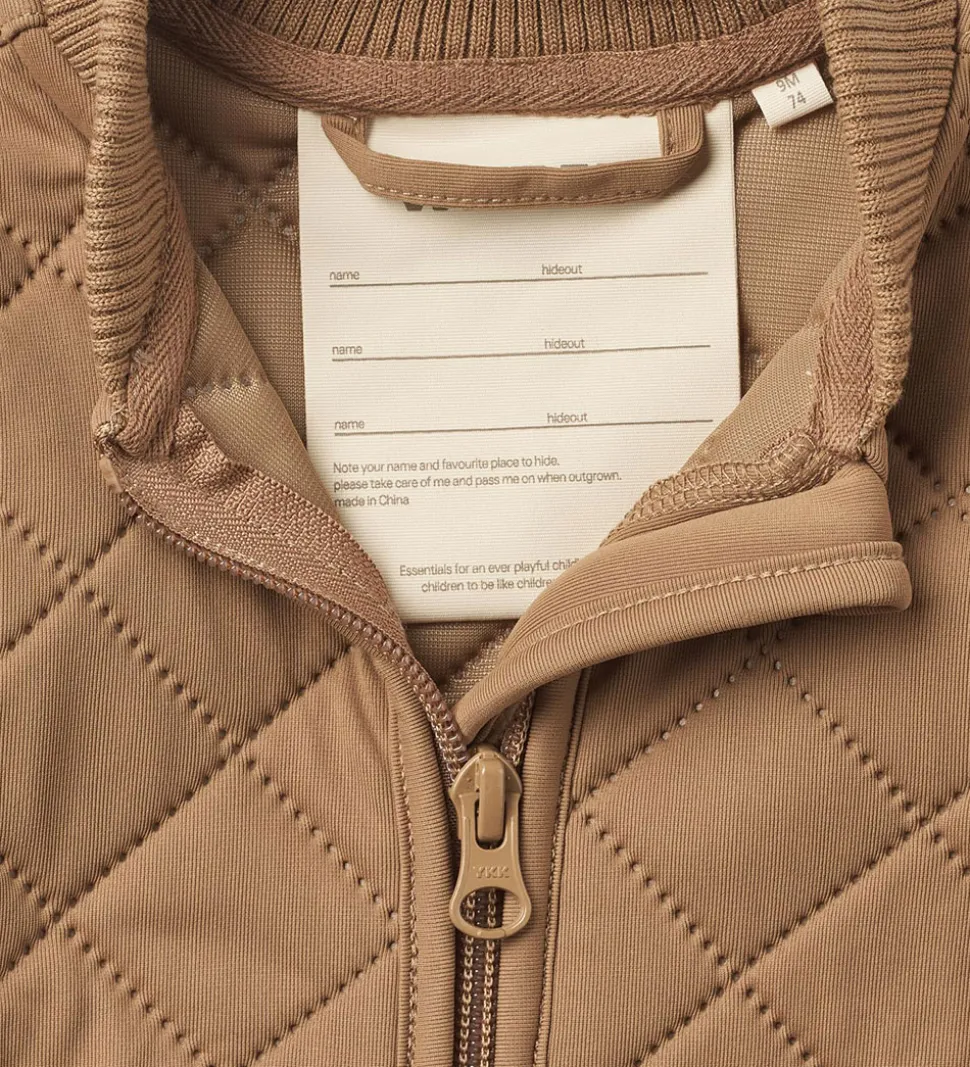 Dejlig Wheat termojakke i nøddebrun med en quiltet struktur.
